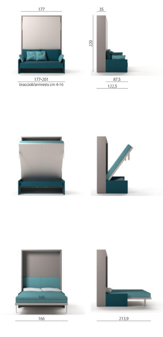 I letti trasformabili Clei Roma, nelle versioni con divano, sono autoportanti senza la necessità di essere ancorati al muro retrostante quindi installabili in ambienti con pareti realizzate in cartongesso che quindi non offrano un solido ancoraggio e nella massima sicurezza di utilizzo.